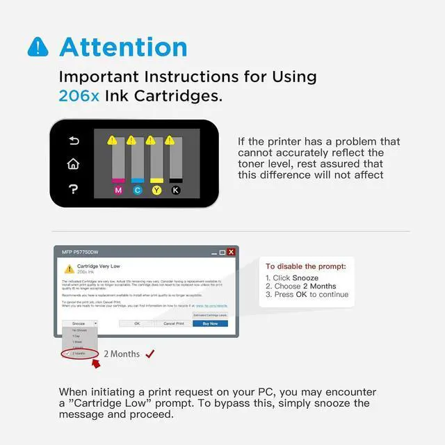 Vibrant Black & Color Output: Prepare to be amazed by the depth and richness of our 206X W2110X W2111X W2112X W2113X 206 A toner cartridge's black & color output. Enjoy sharp and striking text, creating an impact that grabs attention. Your documents will have a polished and professional appearance, making a lasting impression