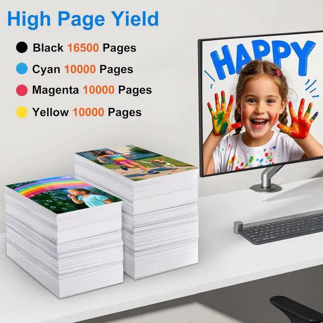 Higher Yield Page: The page yield of a 32XL black 100ml ink bottle is up to 6360 pages, the 31 Cyan 100ml ink is 9,000 pages, the yellow 100ml ink 31 is 9,000 pages, and the 31 magenta100ml ink is 9,000 pages too, at 5% coverage on A4 paper.