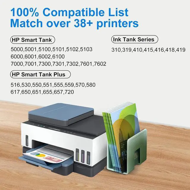 Compatible PrintersGewoen 31 ink 32xl black ink bottle set is compatible with HP Smart Tank 5000 5101 7602 5103 6001 7001 7301 7002 7006 5102 7302 printers. Work for Smart Tank Plus 651 551 555 557 559 655 617 570 571 578 600 615 675 printers. And Smart Tank Series 450 455 457 500 515 520 530 580 590 517 532 502 514 720 750 and Ink Tank Series 310 319 410 415 416 418 419