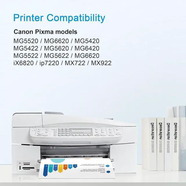 Printer Compatibility: Compatible with Canon Pixma MX922, MX920, MX722, MG5420, MG5422, MG5500, MG5520, MG5522, MG5620, MG5622, MG6320, MG6420, MG6620, MG7120, MG7520, IP7220, IP8720, IX6820 Inkjet Printer.