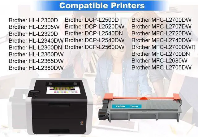 5. For use in Brother DCP-L2540DW, Brother MFC-L2740DW, Brother HL-L2380DW, Brother DCP-L2520DW, Brother DCP-L2540DN, Brother DCP-L2560DW, Brother DCP-L2500D, Brother DCP-L2520D, Brother HL-L2300D, Brother HL-L2305W, Brother HL-L2320D, Brother HL-L2340DW, Brother HL-L2360DN, Brother HL-L2360DW, Brother HL-L2365DW, Brother MFC-L2700D, Brother MFC-L2700DW, Brother MFC-L2720DW, Brother MFC-L2705DW.