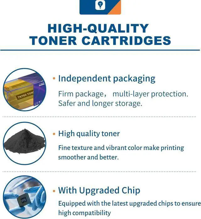 With Upgraded Chip: Equipped with the latest upgraded chips to ensure high compatibility.Fine toner, smooth coloring, balanced printing color. Make the printed product more delicate and clear. Avoid poor print results from uneven colors