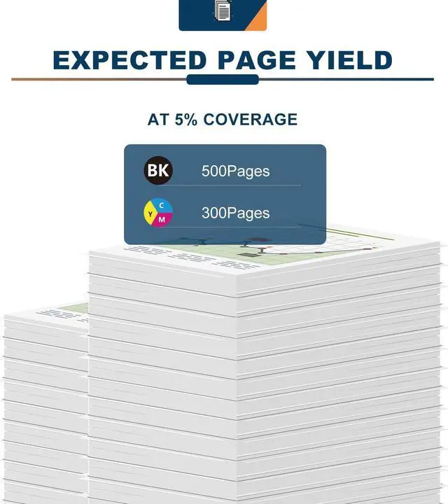 High Page Yield: 500 pages per black ink cartridge, 300 pages per color ink cartridge | Inkject 1.5 times more ink than the original cartridge