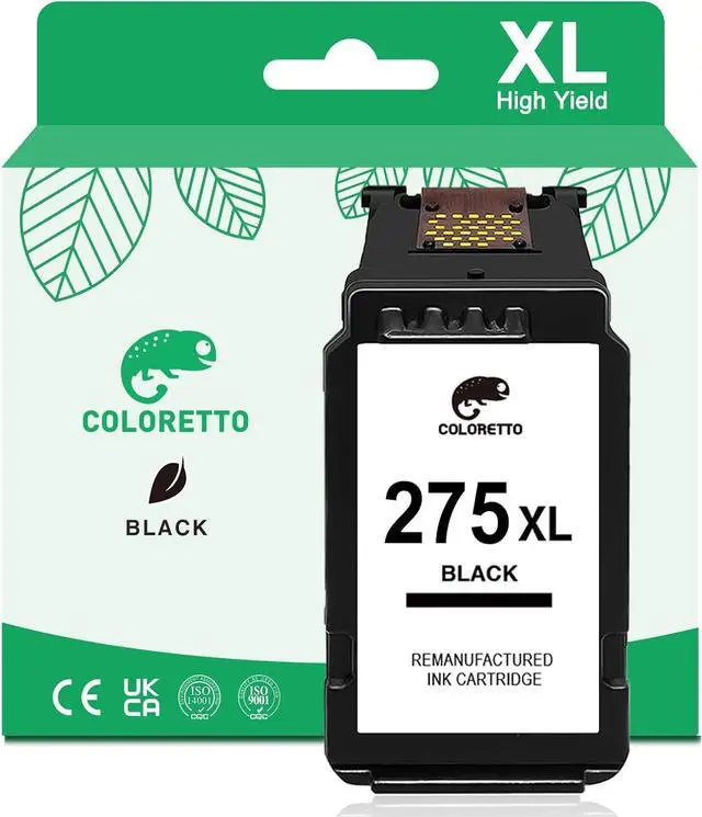 Latest Chip & High Page Yield: Each COLORETTO 275XL black ink cartridge (15 ml) for Canon ink 275 XL prints up to 450 pages (based on 5% coverage of A4 paper); The smart chip technology allows real-time ink level reading