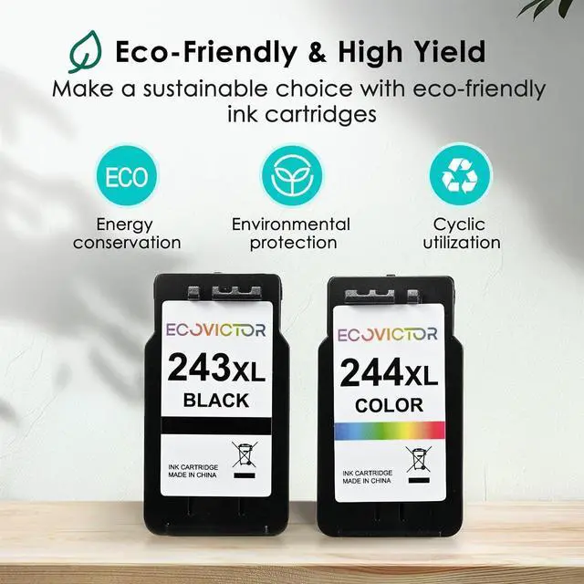Eco-Friendly Printing Excellence: Eco Victor PG 243 and CL 244 ink cartridges combo pack is made from eco-friendly materials and the latest technology to deliver greater efficiency, higher printing precision, and reliable accuracy. Certified Climate Pledge Friendly and meeting FSC standards, these cartridges support sustainability. The 243 black ink cartridge prints sharp, clear black text for your documents, and the 244 color ink cartridge produces vibrant, natural color photos.