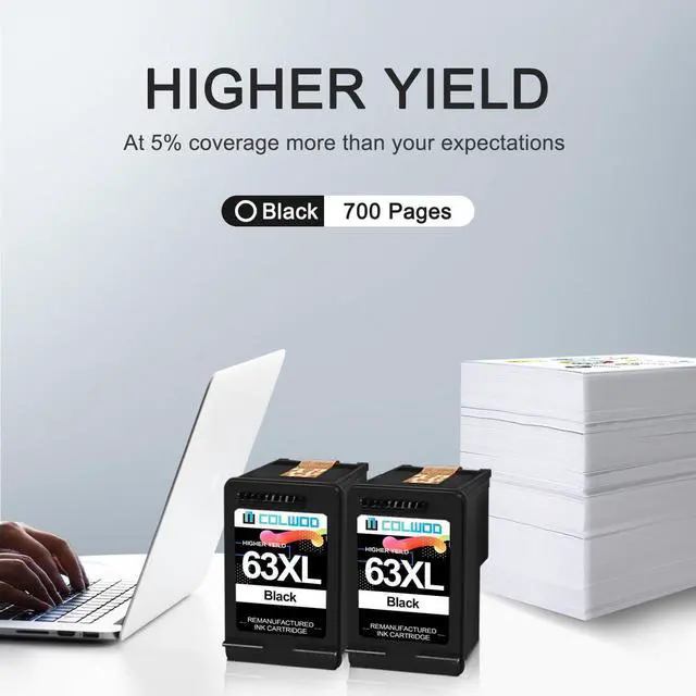Upgrade Cartridge: COLWOD remanufactured 63XL cartridge improves the fluidity and stability of ink, and the latest upgraded chip ensures high compatibility to provide you with clear and vivid printing.