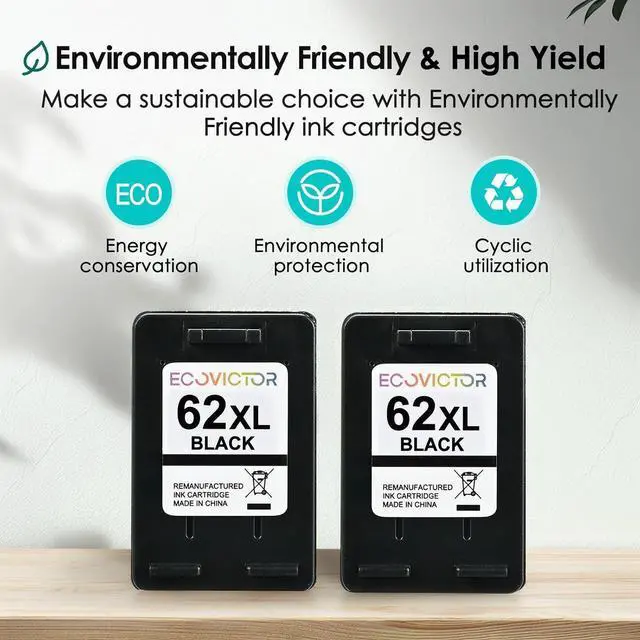 Smart Chip, Easy Monitoring: Our compatible with hp ink 62 xl are equipped with the latest smart chip. EcoVictor for hp62xl black ink cartridge ensures full compatibility with hp envy printer ink. Monitor ink levels in real time and avoid unexpected interruptionsEcoVictor black ink cartridges for hp printers 62 are ideal for busy households and workplaces.