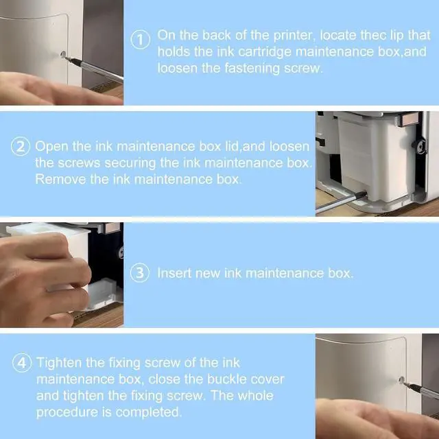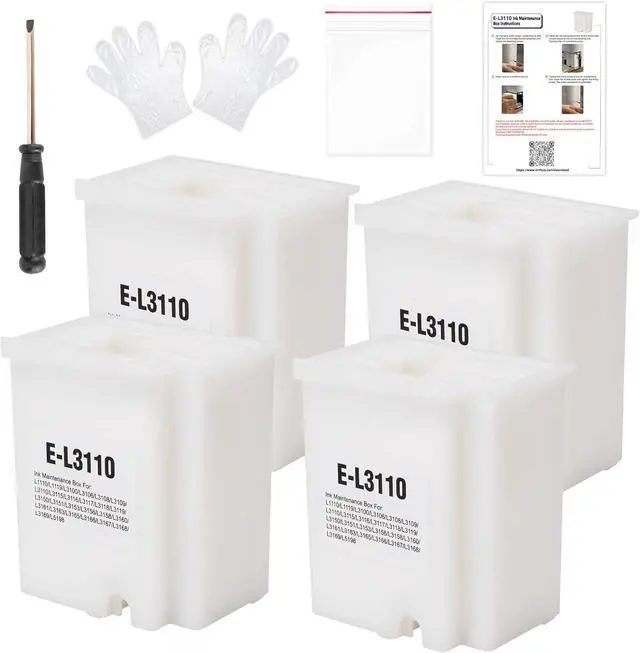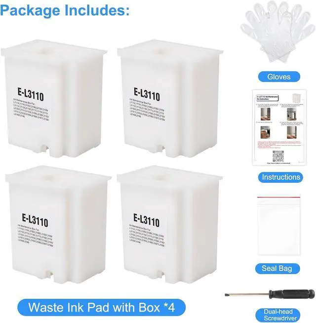 What In The Box: 4 pcs Waste Ink Pad Replacement ,1* instruction sheet, 1*screwdriver, 1 pair of disposable gloves, 2 transparent resealable poly bags.