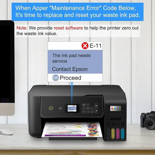 Solution For Ecotank Printer Error Code: A replacement maintenance box and extra waste ink pads to solve your printer error code "The Ink Pad Needs Service Contact Epson".