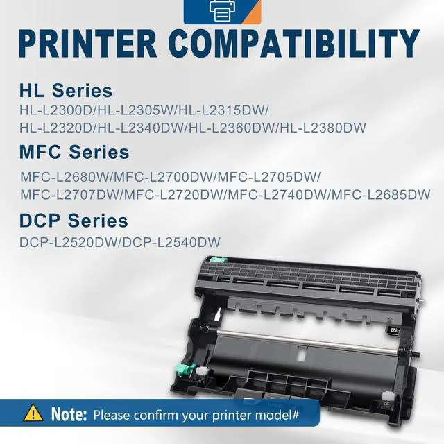 Compatible for Laser printer:HL-L2300D, HL-L2305W, HL-L2320D, HL-L2340DW, HL-L2360DN, HL-L2360DW, HL-L2365DW, HL-L2380DW, DCP-L2500D, DCP-L2520DW, DCP-L2540DN, DCP-L2540DW, DCP-L2560DW, MFC-L2700DW, MFC-L2707DW, MFC-L2720DW, MFC-L2740DW, MFC-L2700DWR, MFC-L2700DN, MFC-L2680W, MFC-L2705DW.