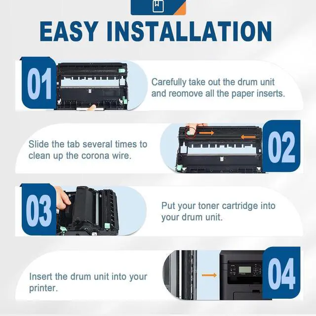 Drum unit MUST BE RESET after installation: If your printer displayDrum Ends Soon, "Replace Drum" or Drum Endedmessages during installation. Please follow the "IMPORTANT NOTE" on the product to scan and view the instructions to install and reset the drum unit.