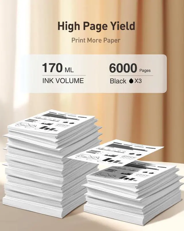 High Page Yield: Up to 6,000 pages per GI-20 ink black pigment ink. Total 18,000 pages for Canon Pixma G6020 ( at 5 percent coverage on A4 paper)
