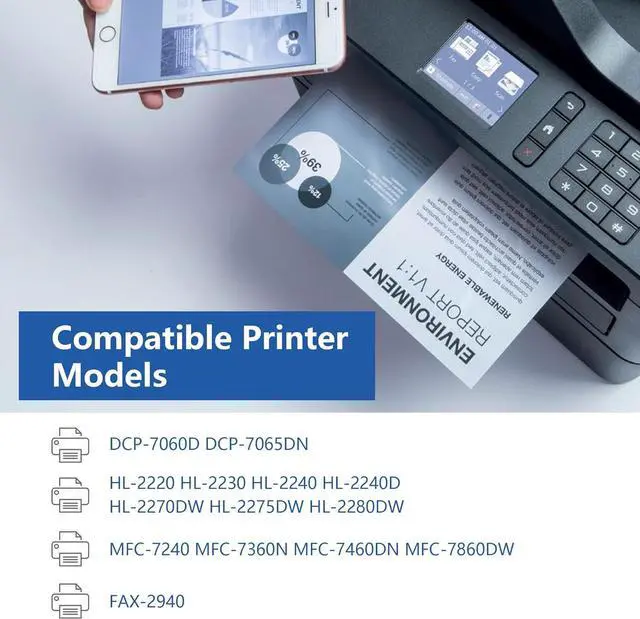 4,Compatible Printers: MFC Series Printer:MFC-7240 MFC-7360N MFC-7365DN MFC-7460DN MFC-7860DW HL Series Printer: HL-2130 HL-2132 HL-2220 HL-2230 HL-2240 HL-2240D HL-2242D HL-2250DN HL-2270DW HL-2275DW HL-2280DW DCP Series Printer:DCP-7060D DCP-7065D Intellifax Series Printer:2840 2940