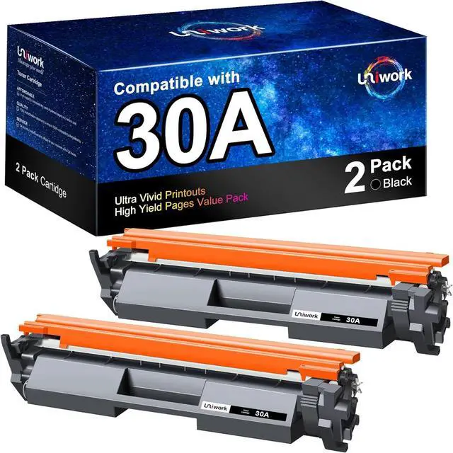 Uniwork 2 Pack 30A 30X CF230A CF230X Black Toner Cartridge Replacement for HP 30A black toner cartridge (with Updated Chip)