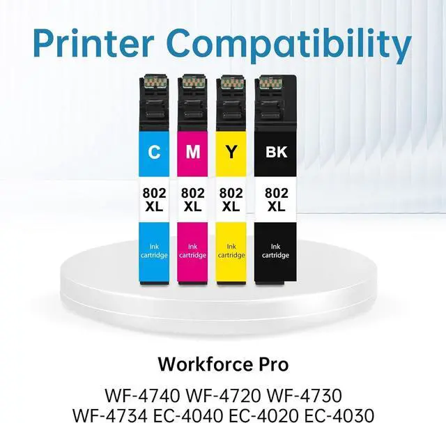 802XL Ink Cartridges Compatibility: DNART remanufacutured 802xl ink cartridges combo pack replacement for Epson 802 802xl ink cartridges for Epson Printer, Epson Workforce Pro WF-4740 WF-4720 WF-4730 WF-4734 EC-4040 EC-4020 EC-4030 (Black Cyan Magenta Yellow, 4 Pack)