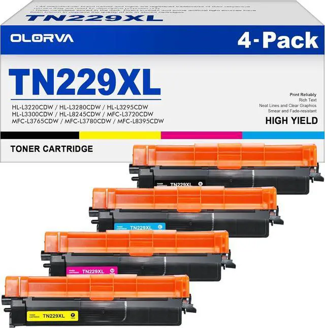 1. Printer Compatibility: TN229XL TN-229bk/c/m/y High Yield Compatible for HL Series: Brother HL-L3280CDW / HL-L3220CDW / HL-L3295CDW / HL-L3300CDW / HL-L8245CDW Compatible for MFC Series: Brother MFC-L3720CDW / MFC-L3765CDW / MFC-L3780CDW / MFC-L8395CDW
