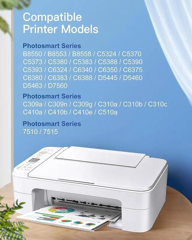 Compatible With HP Photosmart 7510 / 7515 / 7520 / 7525 eAlO / B8550 / B8553 / B8558 / C5324 / C5370 / C5373 / C5380 / C5383 / C5388 / C5390 / C5393 / C6324 / C6340 / C6350 / C6375 / C6380 / C6383 / C6388 / D5445 / D5460 / D5463 / D7560 eAlO / C309a / C309n / C309g / C310a / C310b / C310c / C410a / C410b / C410e / C510a Printer
