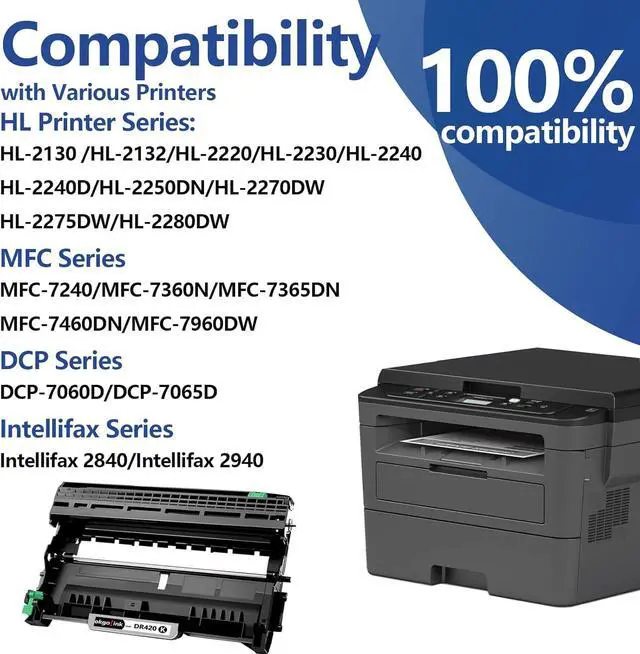 Note: This is Compatible dr420 DRUM unit only . OKGO!INK's DR-420, Perfect partner with your printer, Easy to be installed and recognized.