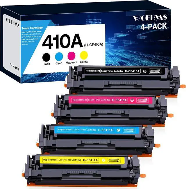 WOEBYAS 4 Packs CF410A Compatible Toner Cartridge replacement for HP 410A 410X CF410A CF411A CF412A CF413A toner cartridges.