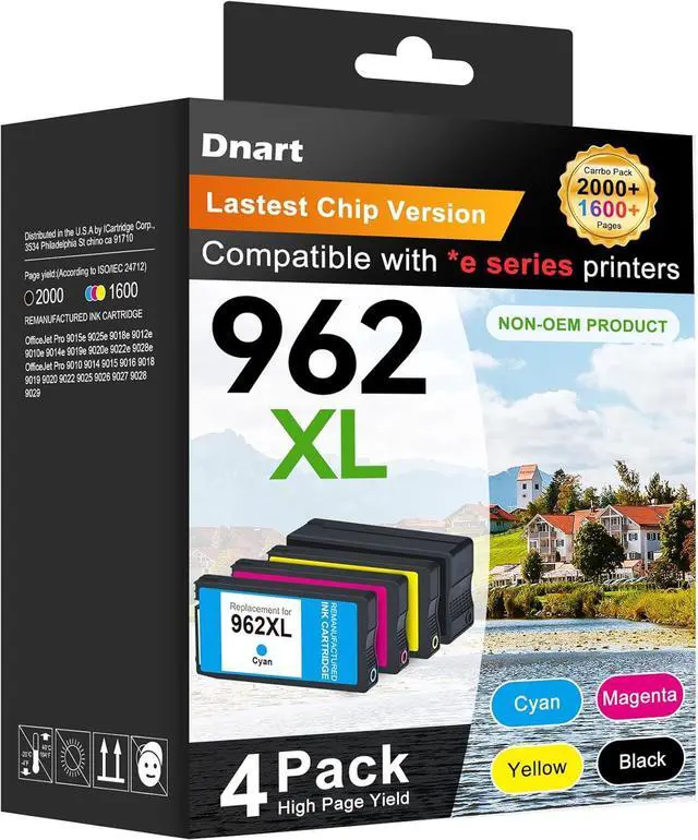 Note: 962XL Ink Cartridges Combo Pack for Printer with the latest chip, compatible with *e series printers (The latest chip resists every firmware version update)