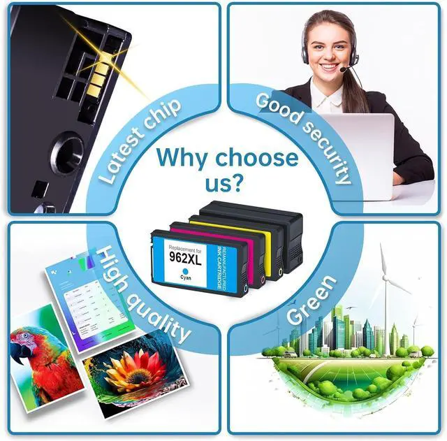 The Latest Chip Replacement for 962XL ink cartridges combo pack with the latest chip, resists firmware version updates, no worry about the compatibility