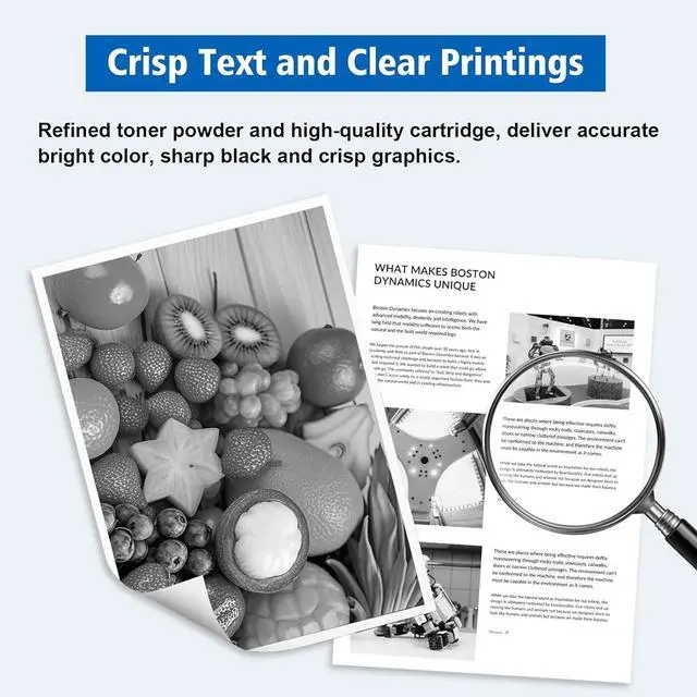 Print Advantages - - Refined toner powder and high-quality cartridge, deliver accurate bright color, sharp black and crisp graphics.