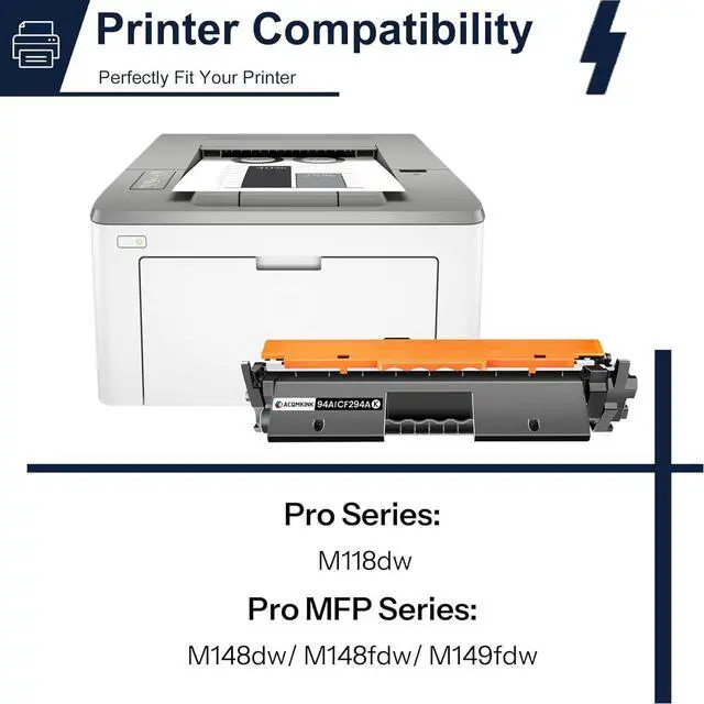 Package Contents: ACQMKINK 94A CF294A Black Toner Cartridge 1 Pack.