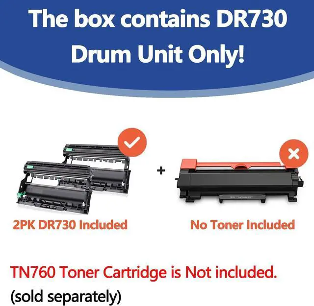 Package includes: 2 Pack of Compatible 760 drum unit replacements for DR730 DR-730. NOT Include TN760 Toner Cartridges. (DRUM unit only, not included toner cartridge)
