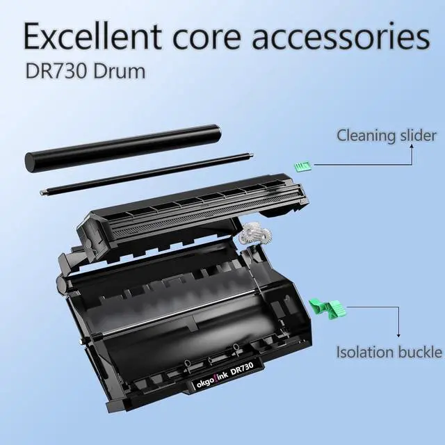 Upgraded Version : OKGO!INK's Compatible DR-730, Perfect partner with your printer, Easy to be installed and recognized. New and improved drum formula brings you alive picture, upgraded technics makes intallation smoothl .