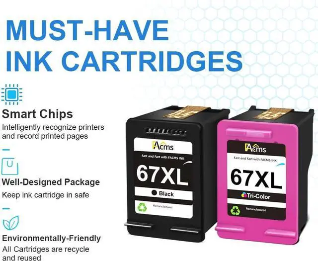 Printout Performance: FACMS remanufactured replacement for hp ink 67xl black and color combo pack provides your printouts with clear and sharp text, vibrant colors.Help with recording the bright moment of your working, study and life.