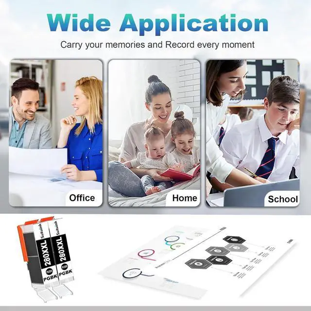 Smart Chip:Sutuink pgbk 280 xxl for canon ink equipped with advanced smart chip technology,it monitors ink usage in real-time,automatically recognizes your Canon printers,and ensures precise ink management.