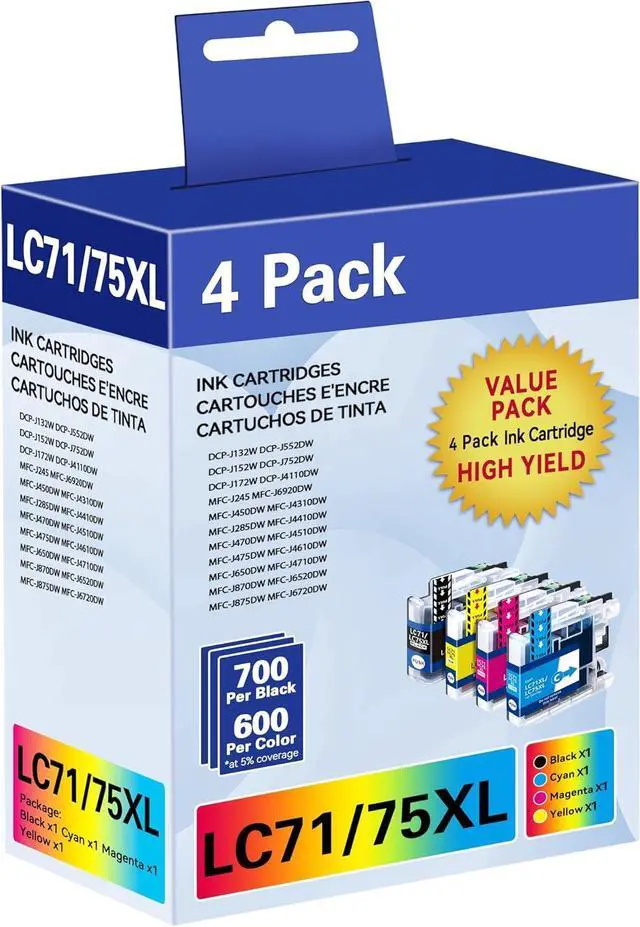 LC71 LC75 LC79 Ink Cartridges for Brother Printer Compatibility: Brother DCP-J132W DCP-J152W DCP-J172W DCP-J4110DW DCP-J552DW DCP-J752DW MFC-J245 MFC-J285DW MFC-J4310DW MFC-J4410DW MFC-J450DW MFC-J4510DW MFC-J4610DW MFC-J470DW MFC-J4710DW MFC-J475DW MFC-J650DW MFC-J6520DW MFC-J6720DW MFC-J6920DW MFC-J870DW MFC-J875DW