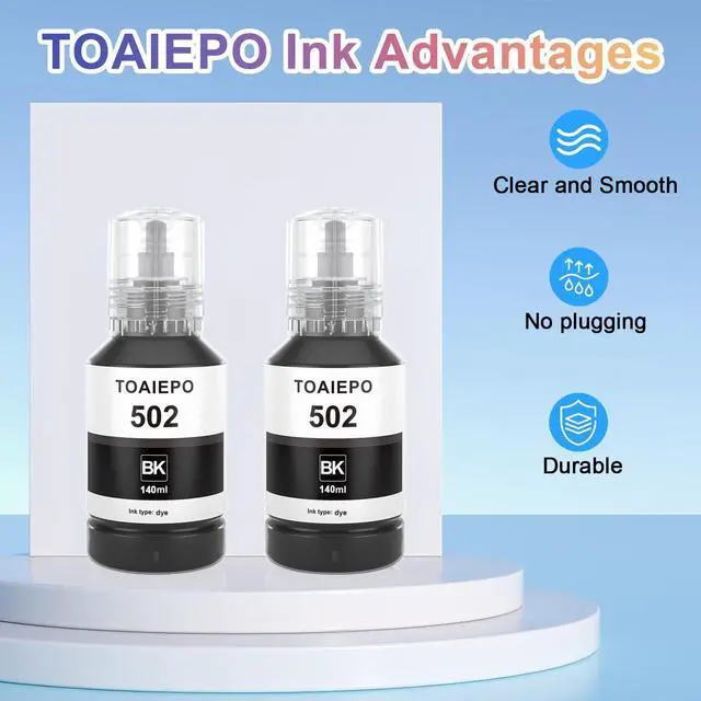Excellent Print Quality: TOAIEPO 502 Bottled Ink has undergone rigorous testing, ensure bright colors and clear lines are printed. High quality and excellent results for daily printing in the office and home.Meet your daily needs anytime, anywhere.
