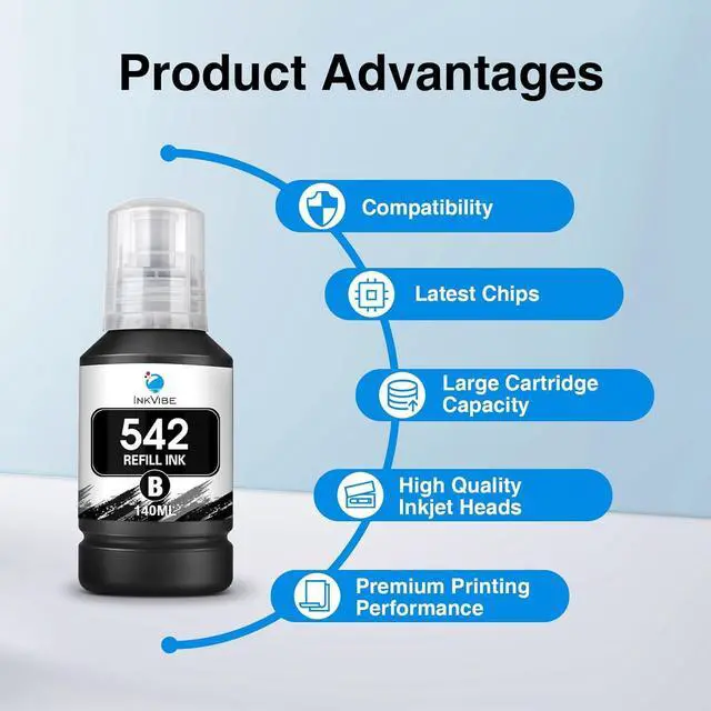 OEM Automatic Design:InkVibe T542 Ink refill kit uses an automatic filling ink bottle design, enables great quality and extraordinary results for office and home everyday printing