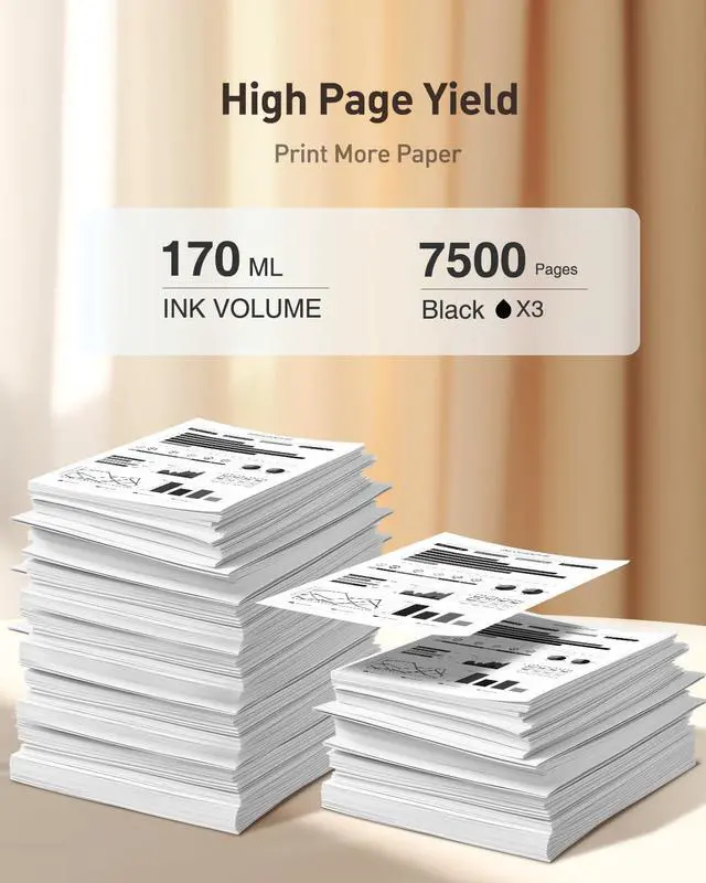 High Capacity 502 Ink: per compatible for Epson 502 black ink bottle can print 7,500 pages (Total 22,500 pages at 5 percent coverage on A4 paper)