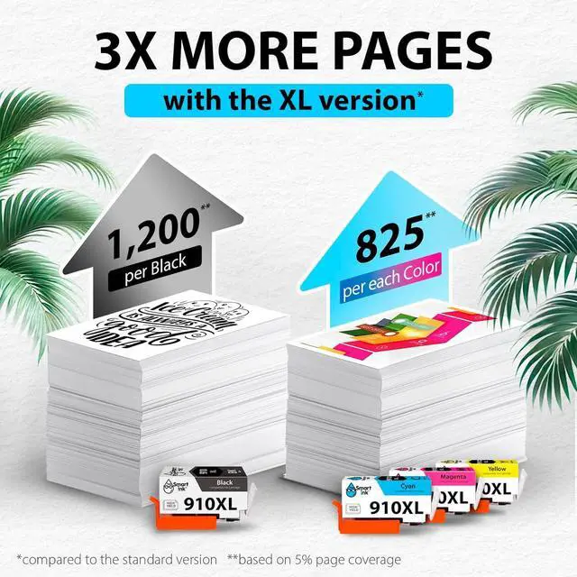 Ink Level Tracking: Smart Ink 910XL cartridges come with a built-in chip that monitors current ink levels, ensuring you reorder in time to avoid unexpected printing interruptions