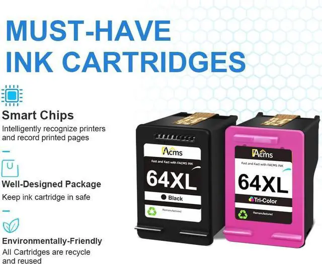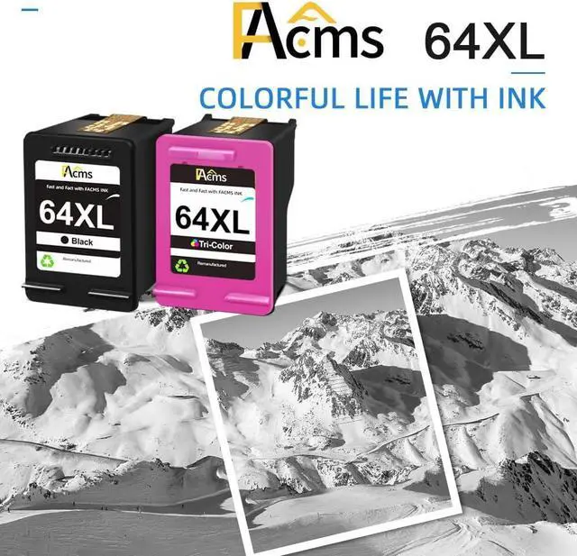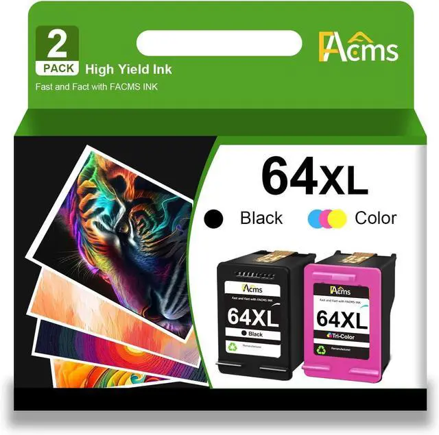 Printout Performance: FACMS remanufactured replacement for hp ink 64xl black and color combo pack provides your printouts with clear and sharp text, vibrant colors.Help with recording the bright moment of your working, study and life.