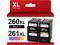 Package Contents: 2 pack of PG-260XL CL-261XL ink cartridges replacement for Canon 260 and 261 ink cartridges