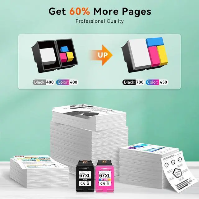 Printer ink for HP 67 ink cartridges black/color combo pack work for DeskJet 1210 1212 1215 1255 2300 2330 2331 2332 2333 2700 2710 2710e 2720 2720e 2721 2721e 2722 2722e 2723 2723e 2724 2725 2729 2732 2734e 2742e 2752 2752e 2755 2755e 2855e 4155e 4255e for DeskJet Plus 4100 4110 4110e 4120 4120e 4121 4121e 4122 4122e 4123e 4130 4130e 4132 4132e 4140 4152 4152e 4155 4158 4158e work for Envy 6000 6010 6010e 6020 6020e 6022 6022e 6030 6030e 6032 6032e 6034 6034e 6050e 6052 6052e 6055 6055e 6058 6065e 6075 6075e for Envy Pro 6400 6420 6420e 6422 6422e 6430 6430e 6432 6432e 6450e 6452 6452e 6455 6455e 6458 6458e 6464 6475 6475e Printer