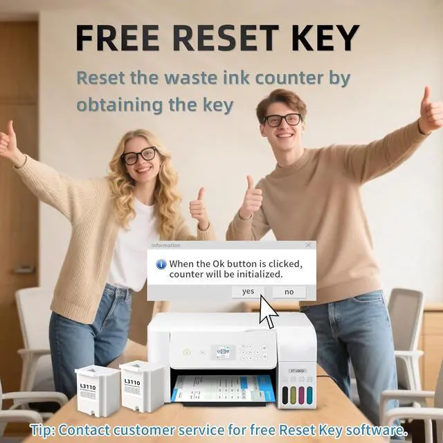 Free Reset Key: Fix "parts end of service life" errors easily. Instead of buying a new printer or returning it, simply replace the waste ink pad yourself in about 20 minutes. If the error persists after replacement, you will need to obtain a security key code and use a utility program to reset the waste ink counter to "0". Our manual provides detailed explanations and an operation video for this process.(Note: You need to contact customer service to obtain the electronic manual and reset key, which are currently not included in the product packaging)