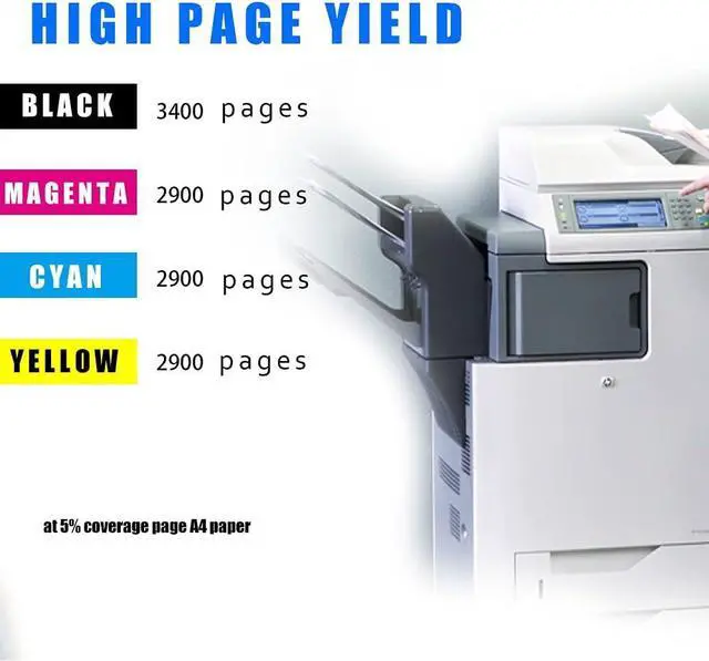 Page Yield : 3,400 pages black and 2,900 color toner cartridge @ 5% coverage ( A4 paper )