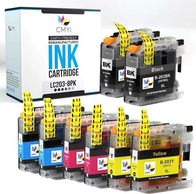 Package Contents: 2x CMYi LC203 Black, 2x LC203 Cyan, 2x LC203 Magenta, 2x LC203 Yellow ink cartridges (This is not an OEM product)