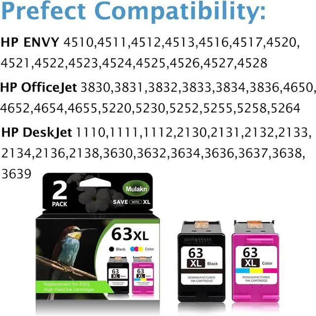 Product Name: Mulakn 63XL Ink Cartridges For HP Ink 63 HP 63 XL (1 Black and 1 Color Combo Pack)