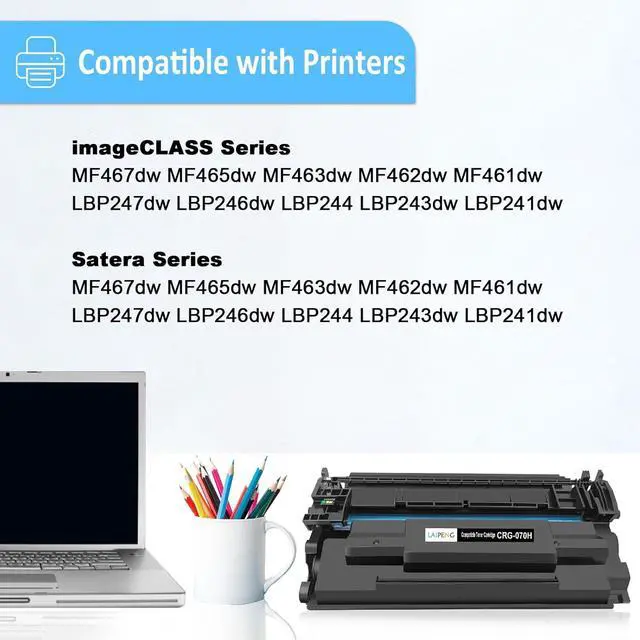 What You Will Get - - 1 pack compatible 070H toner cartridge ( 5640C001 ) with latest data chip, provide real-time toner level monitoring; Replacement for Canon 070 / 070H toner cartridge.