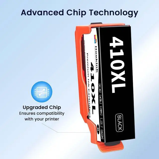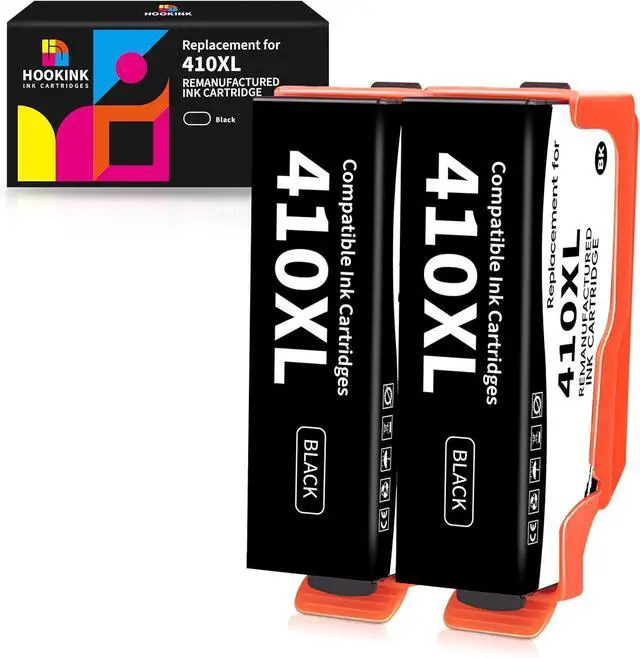 Content in Hookink's package: 2 x 410 XL black and 1 instruction sheet (each cartridge is individually vacuum-packed).