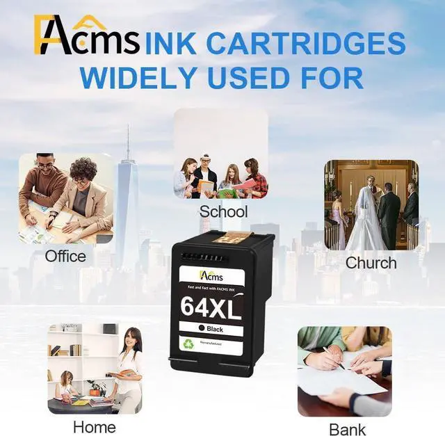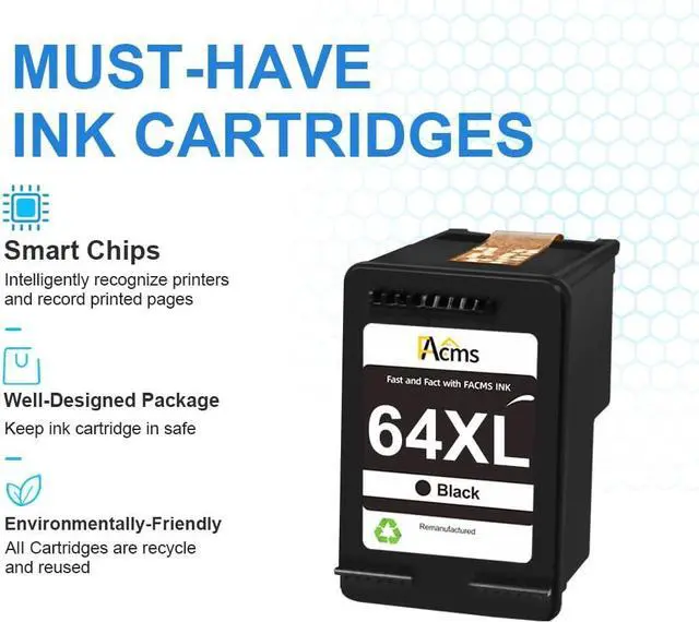 Printout Performance: FACMS remanufactured replacement for hp ink 64xl provides your printouts with clear and sharp text, vibrant colors.Help with recording the bright moment of your working, study and life.