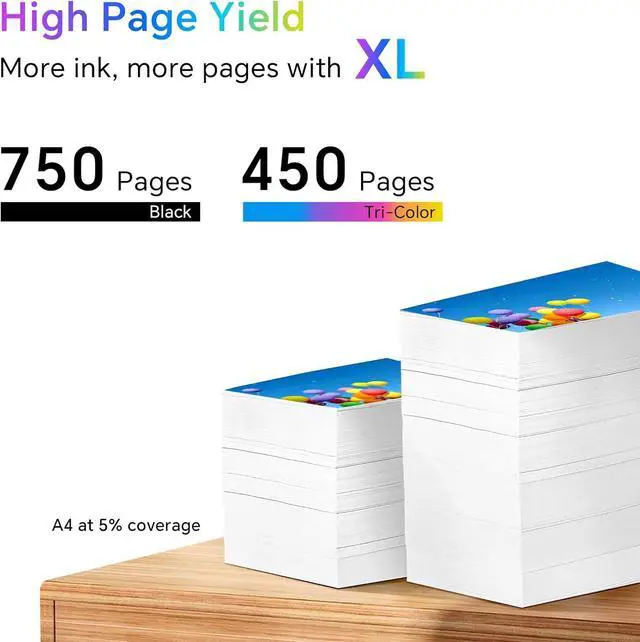 High Yield 67xl ink cartridges, 750 Pages for hp 67 ink cartridges black and 450 Pages for hp 67xl ink cartridges colour (at 5% coverage) of premium quality prints for extended use