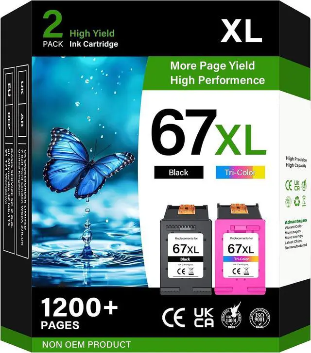Encre for hp 67 ink cartridges 2 pack contents: 1x 67xl ink cartridges black, 1x 67xl ink cartridges tri-color, 1x user guide to assist with installation, you can use 67xl ink cartridges for hp printer ink at work, school, or at home