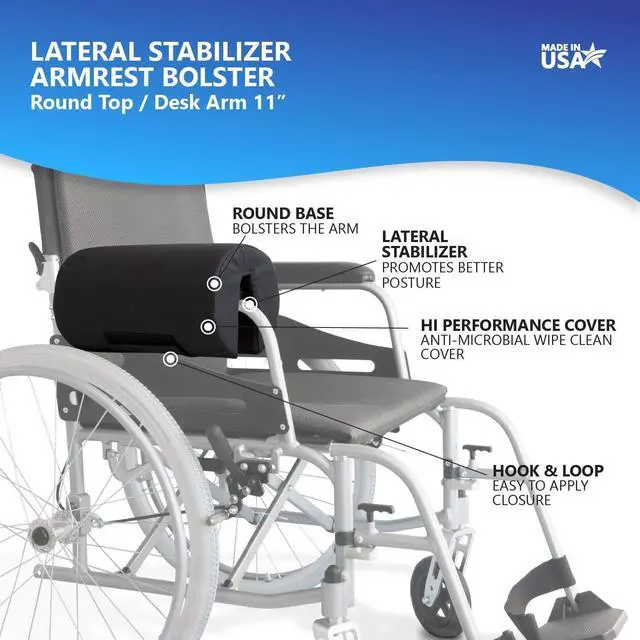 HIGH-QUALITY MATERIALS - NYOrtho's Lateral Stabilizer Armrest Bolster is a round bolster pillow made with comfortable foam covered with a cool and comfortable, high-performance wipe-clean, water resistant fabric to easily keep the bolster sanitized.