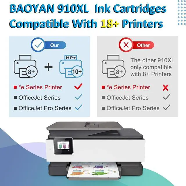 : BAOYAN 910XL Compatible with HP OfficeJet 8010 / 8015 / 8018 / 8022 Printers; Compatible with HP OfficeJet Pro 8020 / 8025 / 8028 / 8035 Printers.